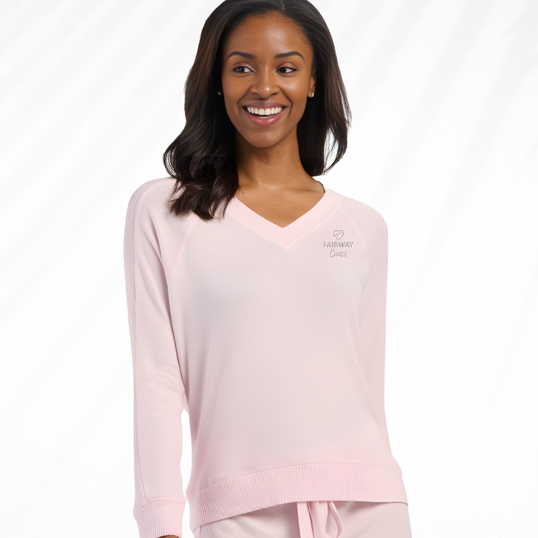 Detail along the sleeve and Fairway Cares gray embroidered logo on chest